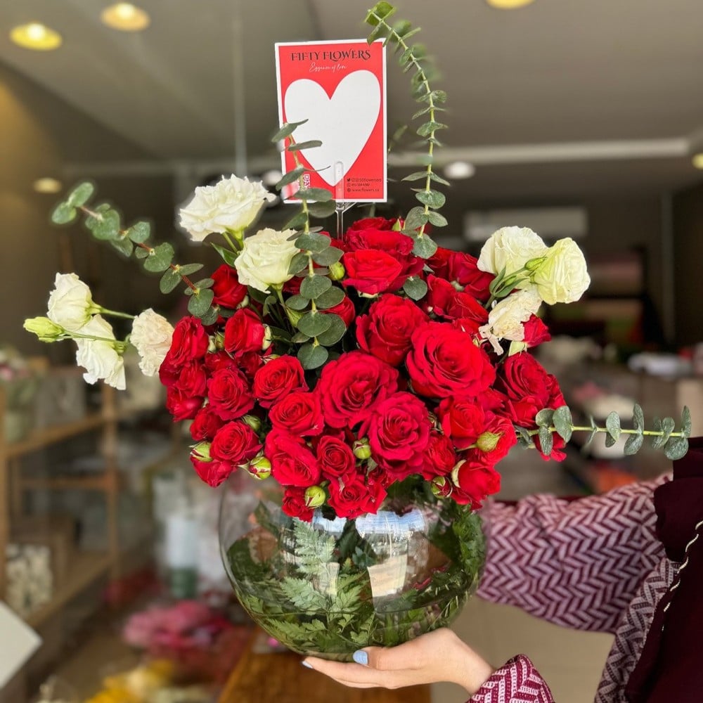 - أفخم فازة ورد ليوم الحب بتصميم أنيق وحجم كبير يلفت الأنظار ويزيّن أي ركن بجمال طبيعي لا يقاوم.