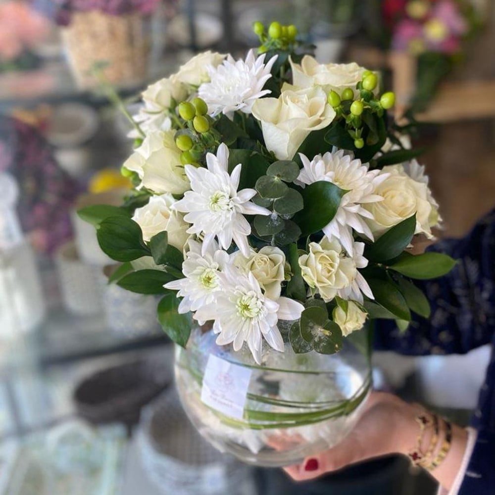 - أفخم فازة ورد بتصميم هادئ يعكس النقاء والبساطة ويليق بالمناسبات الراقية.